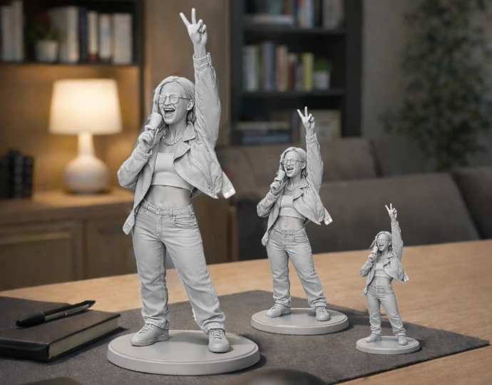 ¡Envíanos tus fotos y, con el poder de la inteligencia artificial, las transformamos en figuras 3D únicas y totalmente personalizables! Creamos el modelo digital, lo imprimimos en 3D y, además, incorporamos iluminación LED para que tus figuras brillen como se merecen. Cada pieza captura tus recuerdos de manera especial y llena de detalle.